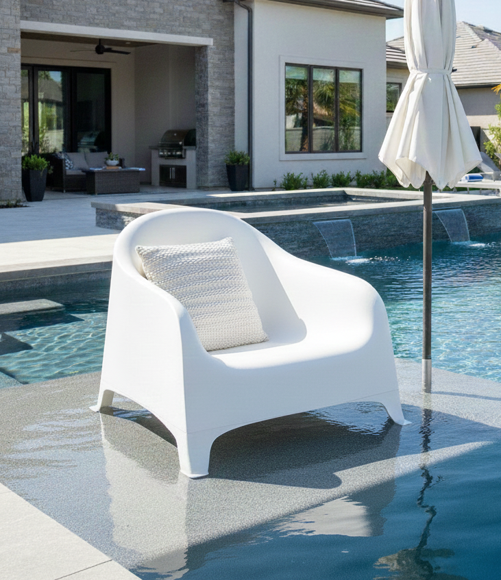 Smooth fiberglass surface allows for quick cleaning and minimal upkeep, making it ideal for poolside and patio environments.